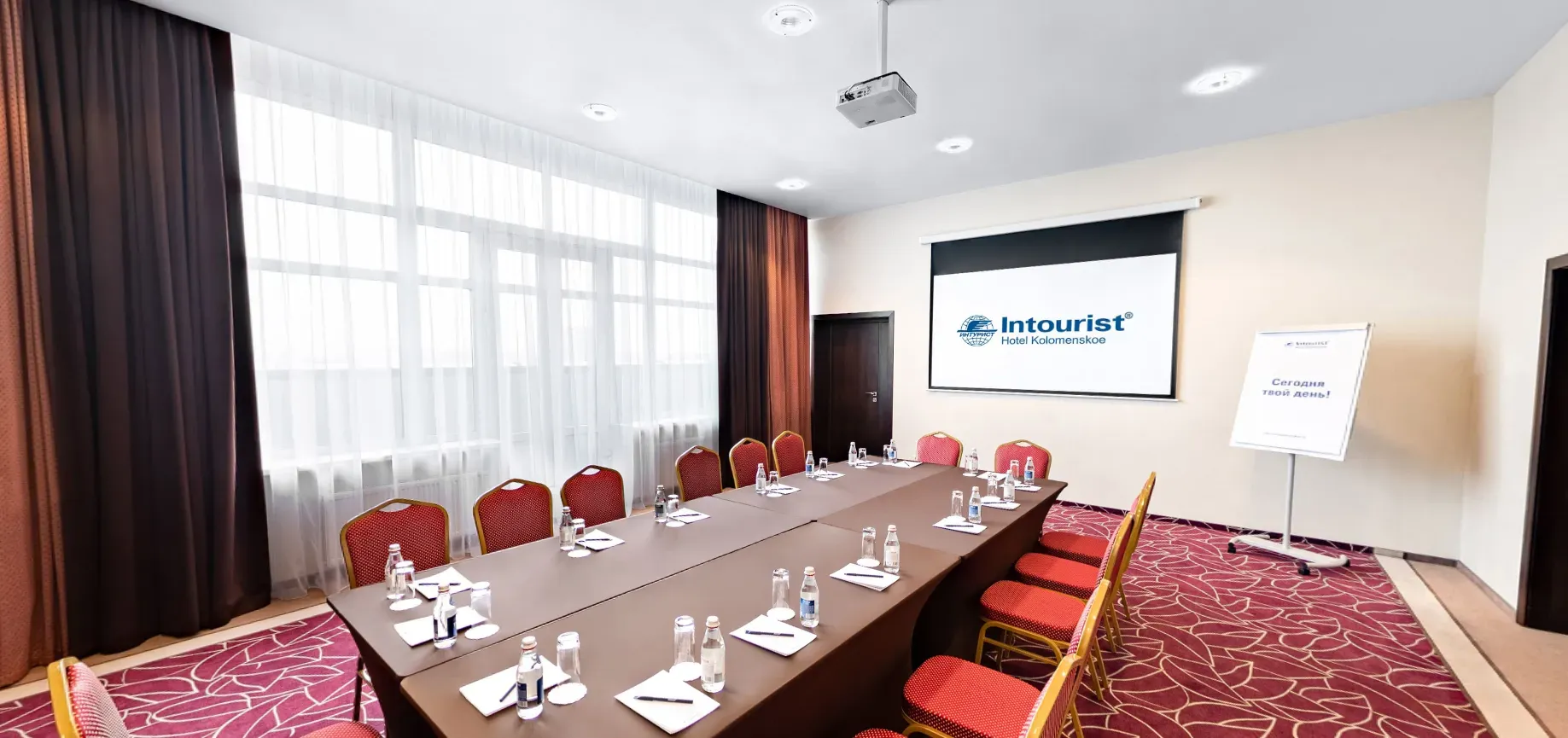 Зал с дневным освещением оборудован индивидуальной системой кондиционирования, экраном, проектором и Wi-Fi.