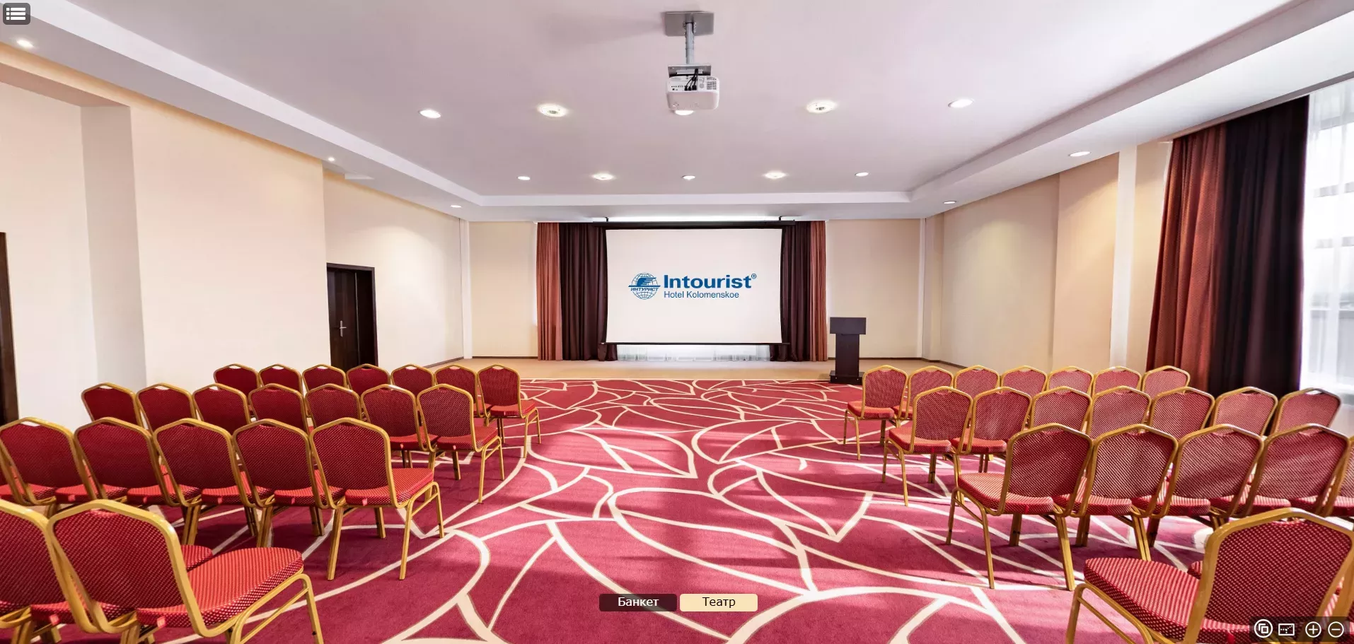 Зал с дневным освещением оборудован индивидуальной системой кондиционирования, экраном, проектором и Wi-Fi.
