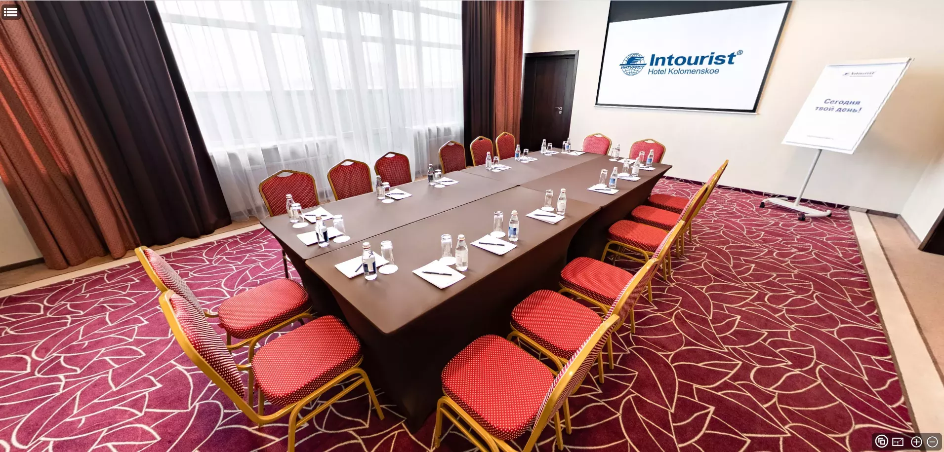 Зал с дневным освещением оборудован индивидуальной системой кондиционирования, экраном, проектором и Wi-Fi.