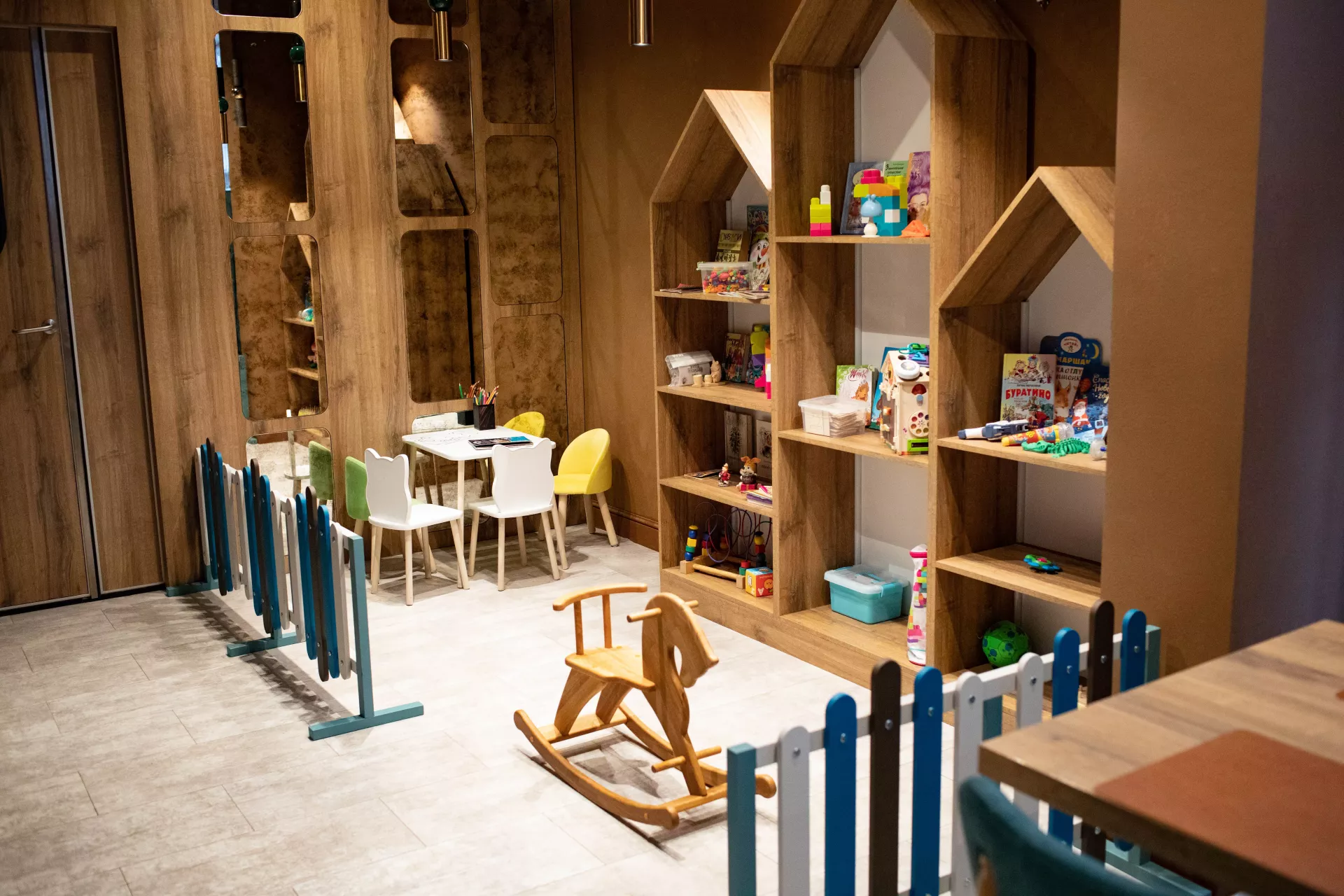Пока родители наслаждаются обедом или ужином, дети могут с удовольствием раскрашивать забавных животных, фрукты и овощи, изображённые на странице меню. Это не только увлекательно, но и помогает занять ребёнка за столом.